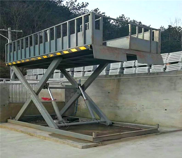 固定剪叉式卸豬臺(tái)連接貨車與地面,它的剪叉機(jī)械結(jié)構(gòu),使卸豬臺(tái)起升有較高的穩(wěn)定性,升降動(dòng)力可分為220V或380V電源,臺(tái)面使用花紋板。
